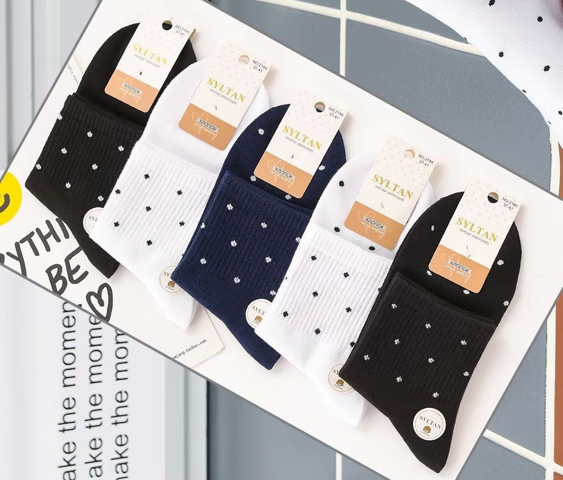 Женские тонкие носки “Syltan” с модным принтом в горошек. В упаковке 10 пар, что делает их отличным выбором для повседневной носки. Носки обеспечивают комфорт и стиль, идеально подходят для сочетания с различной обувью. Высокое качество материала гарантирует долговечность и уют в течение всего дня.